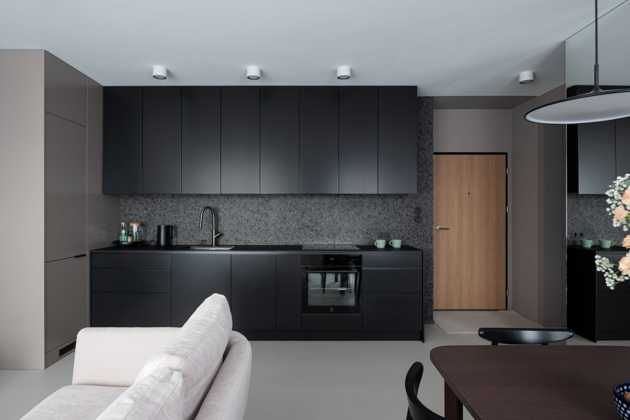 Die Vielseitigkeit von Mikrozement ermöglicht eine nahtlose Integration mit verschiedenen Materialien, um eine moderne und zugleich warme Küche zu schaffen. Kombiniert mit Edelstahl, entsteht eine industrielle Ästhetik, die gleichzeitig funktional ist. Beispielsweise passen mikrozementierte Arbeitsplatten perfekt zu Edelstahlgeräten, wodurch ein elegantes und einheitliches Erscheinungsbild entsteht.